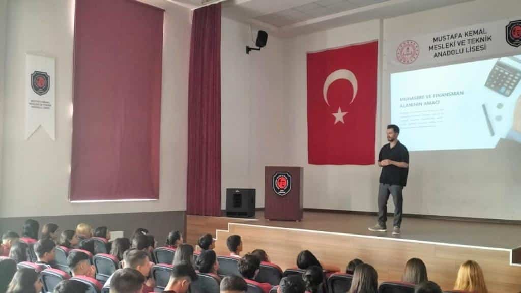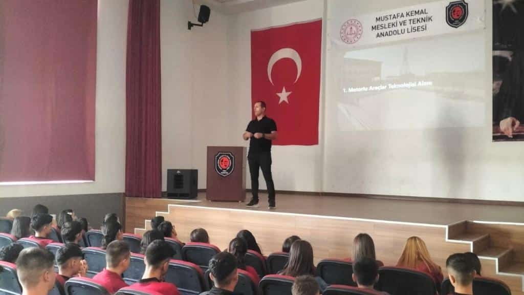2 ayrı oturumda gerçekleştirilen alan tanıtım faaliyetlerinde Büro Yönetimi ve Yönetici Asistanlığı alanı alan şefimiz Ayfer ÖZBEY ARI, Muhasebe ve Finansman alanı alan şefimiz Gökhan HANÇAR, Motorlu Araçlar Teknolojisi alanı alan şefimiz Hakan CEYLAN alanlarına ait bilgilendirmeyi öğrencilerimize yaptılar. Alan tanıtımlarının ardından müdür yardımcımız Faruk ERGÜN ise öğrencilerimize tercih rehberi hakkında bilgi verdi.
